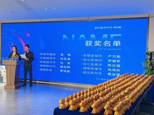 眾志成城 踏浪而歌 直播開場首先給全國各地優(yōu)秀的浙派專賣店進(jìn)行隆重的頒獎儀式,獎項設(shè)立共由6個部分組成,分別是:銷售·領(lǐng)尚之星、服務(wù)·風(fēng)尚之星、門店·時尚之星、新秀·銳尚之星、創(chuàng)新·藍(lán)尚之星、總裁特別獎。 從這次儀式中可以看到,浙派專賣店早已遍布了大江南北,從烏魯木齊盆地跨越到了江南平原丘陵,浙派早已走進(jìn)千家萬戶。