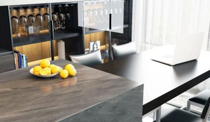 ??一體化的餐廚打破空間阻礙,保證了空間和視覺(jué)的和諧統(tǒng)一,給人的觀感不僅成熟大氣,還折射出低調(diào)的時(shí)尚。