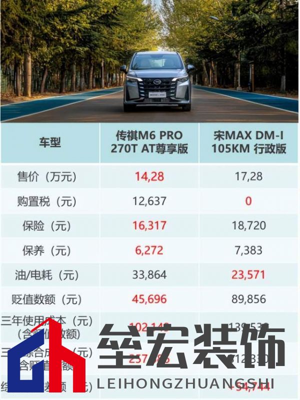 ??綜合成本大比拼,超高性價(jià)比的家用MPV竟然是? ??抵達(dá)六環(huán)最終目的地后,總共的里程是160公里,我們結(jié)合兩車的油耗數(shù)據(jù)進(jìn)行了最后的綜合成本大比拼。購買家用MPV,除了動(dòng)力空間的考量,往往還需綜合考慮到日常油電耗、保值率、保險(xiǎn)等綜合用車成本的要素。從綜合客觀的角度出發(fā),我們對兩車三年內(nèi)六萬公里的用車成本進(jìn)行計(jì)算統(tǒng)計(jì)。首先,兩款車在購車成本上:傳祺M6 PRO 270T AT尊享版的價(jià)格為142800元,價(jià)格比比亞迪宋MAX DM-i 105KM行政版的172800元更加親民實(shí)惠。