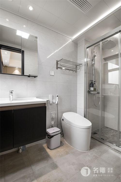??衛(wèi)生間無需著重筆墨,從簡為主,素白瓷磚鋪敘,線性燈的配合,光線柔和明亮整潔,干濕分離,沒有過分清冷氣息。 ??項目信息 ??項目地址:中泰上境 ??項目風格:現(xiàn)代輕奢 ??項目面積:300㎡ ??服務團隊:名雕興中分公司 ??設(shè)計師:裴巧英 ??——