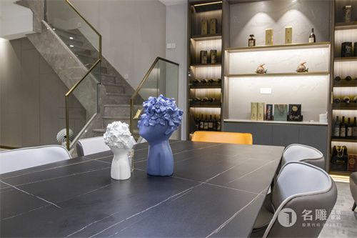 ??客廳和餐廳無縫連接,空間對話自由,巖板餐桌和桌角支撐弧形設(shè)計,耐磨易清潔特點,適用孩子家庭,配上藍白裝飾雕塑,縈繞輕松用餐享受。 ??□ □ □ ??“ 逐光而居,自然純粹 ”