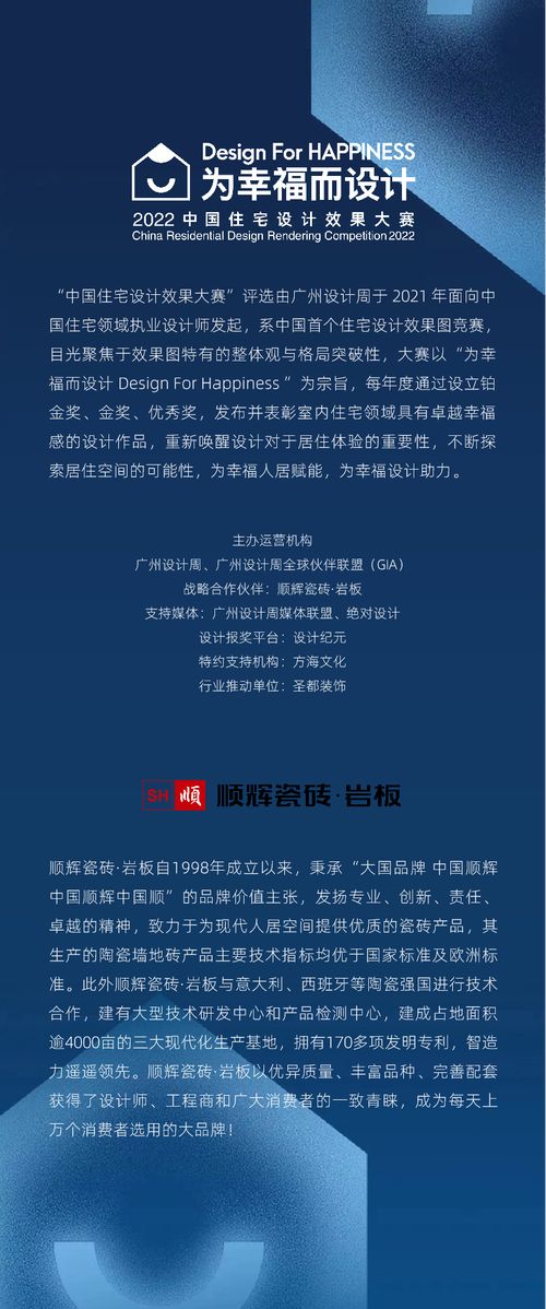 “中國(guó)住宅設(shè)計(jì)效果大賽”評(píng)選由廣州設(shè)計(jì)周于 2021 年面向中國(guó)住宅領(lǐng)域執(zhí)業(yè)設(shè)計(jì)師發(fā)起,系中國(guó)首個(gè)住宅設(shè)計(jì)效果圖競(jìng)賽,目光聚焦于效果圖特有的整體觀與格局突破性,大賽以“為幸福而設(shè)計(jì) Design For Happiness ”為宗旨,每年度通過設(shè)立鉑金獎(jiǎng)、金獎(jiǎng)、優(yōu)秀獎(jiǎng),發(fā)布并表彰室內(nèi)住宅領(lǐng)域具有卓越幸福感的設(shè)計(jì)作品,重新喚醒設(shè)計(jì)對(duì)于居住體驗(yàn)的重要性,不斷探索居住空間的可能性,為幸福人居賦能,為幸福設(shè)計(jì)助力。