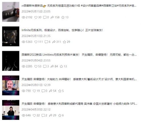 | 自西普斯新品「Infinite無極系列」正片全球首發(fā)圓滿收官以來,熱度仍在持續(xù)。  除此之外,本次新品發(fā)布會備受業(yè)界的關注,目前已有眾多媒體全方位大量報道,各大行業(yè)新聞媒體為西普斯衛(wèi)浴新品正片發(fā)布強力打CALL! 部分媒體報道  ▲報道發(fā)布會的媒體:新衛(wèi)浴網(wǎng)、搜狐網(wǎng)焦點網(wǎng)、騰訊網(wǎng)、網(wǎng)易、新浪網(wǎng)、第一設計網(wǎng)、中國設計網(wǎng)、中國設計聯(lián)盟網(wǎng)、設計TOP、中華家居網(wǎng)、華南家居網(wǎng)、今日頭條、知乎、百家號、搜狐網(wǎng)、一點資訊等媒體均轉發(fā)報道。  ?無極系列在西普斯官方視頻號的點擊觀看數(shù)據(jù),點贊數(shù)據(jù)以及轉發(fā)數(shù)據(jù) 高能霸屏熱點持續(xù)          意大利西普斯衛(wèi)浴自1965年創(chuàng)立,經(jīng)過57年的沉淀與積累,是國際頂級的五金衛(wèi)浴代表品牌。在滿足消費者對衛(wèi)浴產(chǎn)品的需求同時,更加追求產(chǎn)品與空間美學的契合度,以及產(chǎn)品所帶來的輕奢感與舒適感。對產(chǎn)品細節(jié)的嚴格把控和對品質的極致追求,不但獲得了用戶的高度認可與青睞,更是在消費者中積累下優(yōu)秀的口碑。      本次西普斯衛(wèi)浴新品正片發(fā)布余熱不減,離不開廣大主流媒體的積極報道宣傳,感謝各大媒體的大力支持。這次新品正片發(fā)布西普斯衛(wèi)浴收獲滿滿,各地客戶也踴躍訂購,捷報頻傳。 以匠心鑄品質,以初心致未來。未來,西普斯衛(wèi)浴緊跟時尚,追求創(chuàng)新設計,為消費者帶來舒適健康的衛(wèi)浴生活,是西普斯衛(wèi)浴的初心,同時也是西普斯衛(wèi)浴的不懈追求。未來,我們也期待西普斯衛(wèi)浴發(fā)展再上層樓,將更高質量的產(chǎn)品和更舒適的體驗帶給消費者。 |