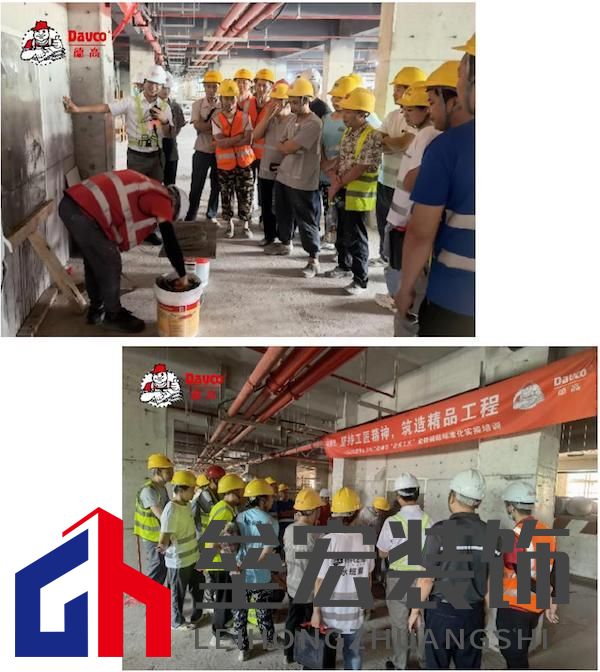 ??理論考試結束后,德高工程師對參賽師傅展開瓷磚鋪貼標準施工工藝實操培訓。德高堅持廠商一體化,致力于推廣薄貼工藝,通過管理要點講解及薄貼工藝實操演示,認真細致地向施工師傅推廣普及產(chǎn)品施工標準工藝。 ??德高工程師傳授標準薄貼工藝