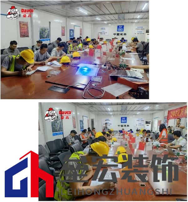 右一:中國陶瓷工業(yè)協(xié)會瓷磚粘貼技術專業(yè)委員會副會長單位高級培訓講師, ??德高全國工程發(fā)展事業(yè)部產(chǎn)品技術應用總監(jiān) 丁天華 ??師傅們全力以赴投入貼磚技能理論考試