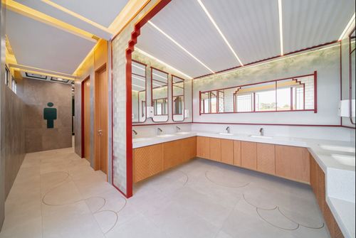優(yōu)化布局,重塑空間 故宮每年接待近2000萬人次的游客,九牧通過優(yōu)化衛(wèi)浴空間布局,提高公共衛(wèi)浴空間利用率,廣納海內(nèi)外游客,盡顯大國風(fēng)范。在景運(yùn)門與端門西的兩處,男女衛(wèi)生間坑位數(shù)量分別增加了14%與4%。同時,九牧通過調(diào)整出入口設(shè)計(jì),使通行更為順暢,增加私密性,避免了公共區(qū)域的視線穿透問題。