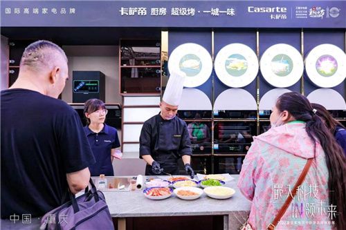 | 現(xiàn)在,越來越多用戶會選擇在家里下廚做飯。調(diào)查顯示,這屆年輕人正逐漸告別外賣,鉆進廚房開始自己做飯??蓽蕚浜昧耸巢?、餐具,卻發(fā)現(xiàn)連基本的火候都掌握不熟,做飯時手忙腳亂。不過,在這兩天的重慶,日常做飯中出現(xiàn)的這些問題有了解決方案。哪怕廚房新手,也能3分鐘烤出意式薄餅披薩。其中有什么奧秘呢?這要歸功于卡薩帝高端廚房。 6月24日,“重百家電節(jié)”在重慶解放碑正式啟動,卡薩帝廚房“超級烤?一城一味”活動同步拉開帷幕。在卡薩帝打造的智慧廚房場景中,用戶可以在銀河烤箱智慧菜譜的加持下,一鍵烘烤,輕松烹飪一桌美食大餐。即使是廚房小白,也能在家輕松做大廚。同時,卡薩帝智慧廚房與阿爾法魚進行了深度結(jié)合,能為用戶一站式解決烹飪難題。