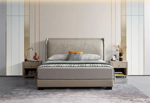 ??CBD家居·金豹 | J011軟床 ??在極簡設(shè)計中看見輕奢之韻,白、褐兩色奠定軟床的溫潤質(zhì)感,營造優(yōu)雅的空間氛圍。甄選皮質(zhì)用料,床框添加皮扣設(shè)計,奢而不華,低調(diào)有品。