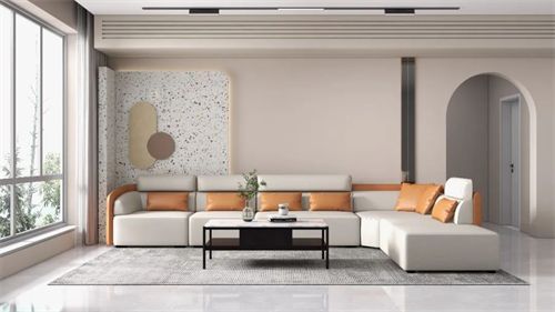 ??CBD家居·雪豹 | X086沙發(fā) ??暖橙和米白的拼色成就沙發(fā)的清新質(zhì)感,線條造型曲直有度,演繹現(xiàn)代極簡風(fēng),模塊狀坐墊展露時尚風(fēng)姿,分段靠背腰枕加持,躺坐更愜意。