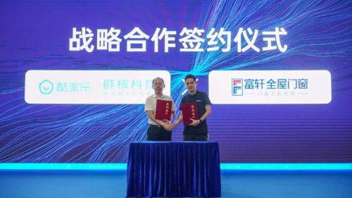 左:富軒門窗營銷中心總經(jīng)理 翁振暉 右:群核科技(酷家樂)聯(lián)合創(chuàng)始人兼CEO 陳航