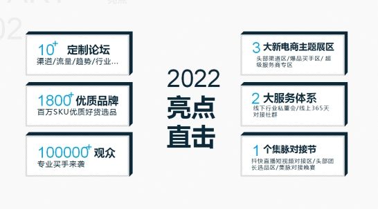 我們致力于成為電商人必打卡的標(biāo)桿展會,打造電商全渠道解決方案和資源撮合平臺。以極致服務(wù),助力商家尋找更多生意確定性! 快抖頭部選品會,全過TOP團(tuán)長選品會 7+3對接晚宴10萬+現(xiàn)場觀眾 1500+品牌商 1800+渠道商服務(wù)商 新渠道買家68% 傳統(tǒng)賣家15% 特邀買家5% 其他觀眾12% 直播短視頻: ① 快抖淘頭部機(jī)構(gòu) ② 主播選品團(tuán)隊(duì) ③ 快抖主流團(tuán)長 實(shí)力線下: ① 商超 ② 禮品 內(nèi)容種草: ① 機(jī)構(gòu) ② 全網(wǎng)KOLKOC ③ 私域大V 團(tuán)購: ① 社群社區(qū)平臺 ② 私域賣貨團(tuán)長 展會亮點(diǎn):