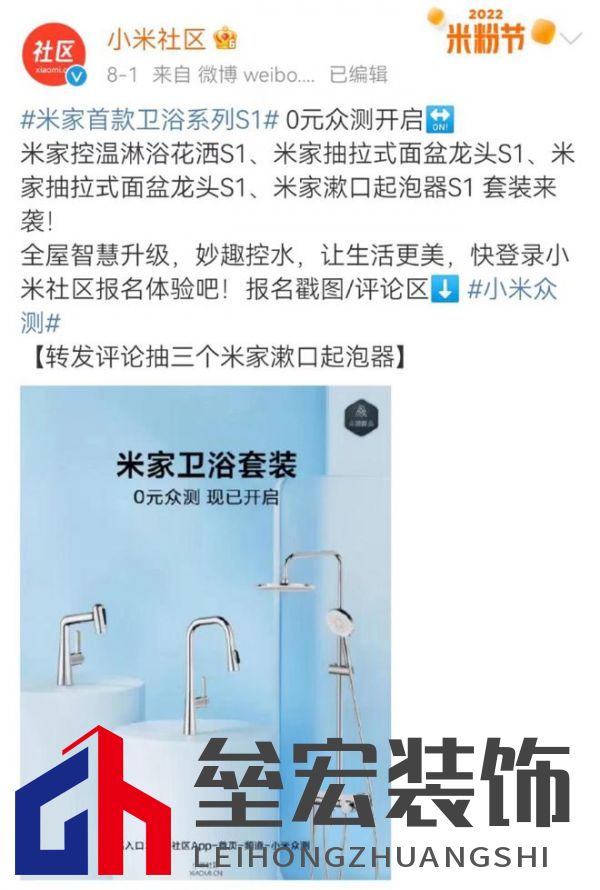 自手機圈脫穎而出后,小米開始性價比和質(zhì)價比的模式介入了與“家”和“生活”相關(guān)的多個企業(yè),小米生態(tài)鏈由此而生。 作為小米的自營智能家庭品牌,米家旨在給消費者帶來集可靠品質(zhì)、優(yōu)良設(shè)計、合理定價于一身的智能家居產(chǎn)品,涵蓋智能安防、智能廚衛(wèi)、智能家電、智能照明、軟裝家紡等多個品類。 2020年10月,小米公司曾對大白衛(wèi)浴進行戰(zhàn)略注資,這家智能五金衛(wèi)浴品牌也正式成為小米生態(tài)鏈企業(yè)的新成員。 8月1日,小米米家首款衛(wèi)浴系列S1發(fā)布,將于8月8日0點正式發(fā)布并開啟預(yù)售。這一動作也被視為小米正式進軍衛(wèi)浴領(lǐng)域! 此次,小米共推出了四款衛(wèi)浴系列產(chǎn)品,分別是米家控溫淋浴花灑S1、米家抽拉式面盆龍頭S1、米家抽拉式廚房龍頭S1以及米家漱口起泡器S1,售價低至49元。