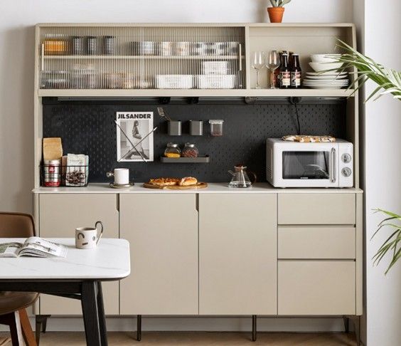 | ??家,是溫暖的港灣;家里的一頓飯,更是治愈心靈的良藥。哪怕在外忙碌打拼早出晚歸,但只要看到廚房暖黃的燈光亮起,心里就會頓感安定,因為有人在等你回家;哪怕事業(yè)或是學(xué)習(xí)遇見再棘手的難題與委屈,只要看到餐桌上熱騰騰的飯菜,心里就會滿是慰藉,因為有人在等你吃飯;哪怕生活中風(fēng)風(fēng)雨雨,但總有一個人愿意陪你三餐四季,與你攜手并進(jìn)。有心、有情、有溫度的家,也藏在客餐廳的一桌一椅之中,舒適溫暖的客餐廳搭配更能給我們家的溫暖。因此,源氏木語特為大家提供了三種溫暖治愈的客餐廳打造法,讓我們一起感受有溫度的家。 ??餐桌餐椅+餐邊柜,收納家的溫暖 ??家無需太大,但需要收納,收納不僅是對物品的整理,更是對生活的編輯。源氏木語打造的獨特溫柔的暖灰餐邊柜,能夠為小戶型家庭的餐廚房進(jìn)行擴(kuò)容。其擁有三層不同功能性收納,可以將我們的鍋碗瓢盆收納得整齊有序。不僅如此,餐邊柜更是采用了玻璃柜門,能夠在輕松拉合方便收納的同時起到裝飾的作用,為餐廳獨添一份精致。 ??此餐邊柜搭配上源氏木語的煙熏色巖板餐桌,白與黑的經(jīng)典碰撞,打破了沉悶的深色系。而且?guī)r板桌面的靈動灰色紋理,更能為精致的餐廳帶來溫婉雅致的氣息。能夠讓你在閑暇時,和三五好友在餐邊柜上調(diào)一杯咖啡,俯身餐桌上安靜閱讀,一起忘卻城市的喧囂與煩惱,共同感受家的溫暖。