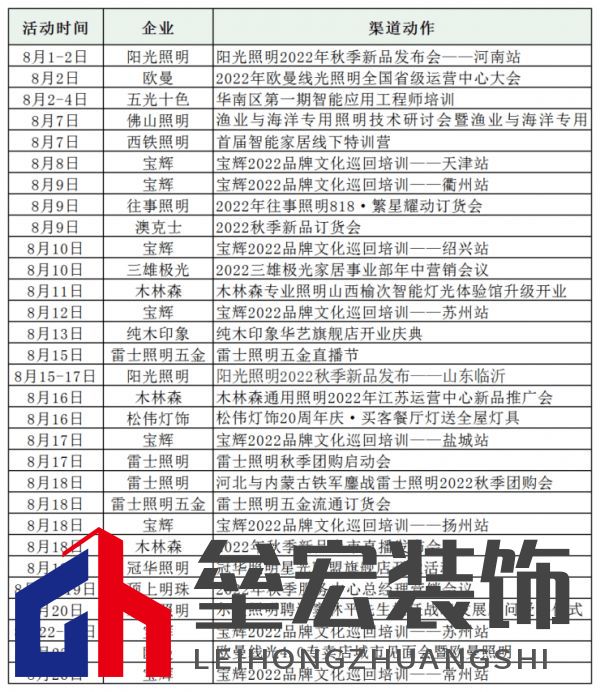 | 隨著各大照企2022年半年度業(yè)績報告的出爐,疫情下各大照明企業(yè)的渠道布局也成為大眾關注的一大亮點,在筆者看來,疫情加速了照明行業(yè)從“紅?!钡健八{海”的轉變,而未來的競爭關鍵則是渠道下沉的比拼。 對于照明行業(yè)而言,接連不斷的“會議”營銷,就是照明行業(yè)渠道競爭激烈的最直觀體現(xiàn)。綜合來看,無論是渠道會議、交流會議、新品推廣會議,還是培訓會議,都是在憑借企業(yè)核心競爭力賦能終端。 進入8月,各個企業(yè)再度掀起一場渠道熱,木林森、陽光照明、歐曼、雷士照明、佛山照明、松下照明、五光十色、冠華照明、寶輝等一大波企業(yè)紛紛在渠道上“動”起來。  據(jù)不完全統(tǒng)計,今年8月份已有30場“會議”營銷,本期,讓我們一同走進木林森、雷士照明、陽光照明、歐曼照明等企業(yè),看看他們在渠道下沉上都是如何發(fā)力的? 木林森 01 經(jīng)銷商渠道 關鍵詞:通用照明新品推廣會 8月11日,木林森專業(yè)照明山西榆次智能燈光體驗館盛大開業(yè);8月16日,木林森以“大勢所趨 未來已來”為主題召開了木林森通用照明2022年江蘇運營中心新品推廣會,會上廠商同商共議,并對下半年木林森通用照明在江蘇市場的建設提出了更明確的發(fā)展方向。