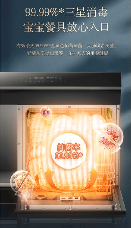 ??而美的飛檐XH10集成洗碗機(jī)不僅節(jié)省了您做家務(wù)的時(shí)間,更在清洗、烘干、消毒、存放抑菌方面有多重專業(yè)設(shè)計(jì)。令洗碗機(jī)達(dá)到行業(yè)最高的三星消毒標(biāo)準(zhǔn)。