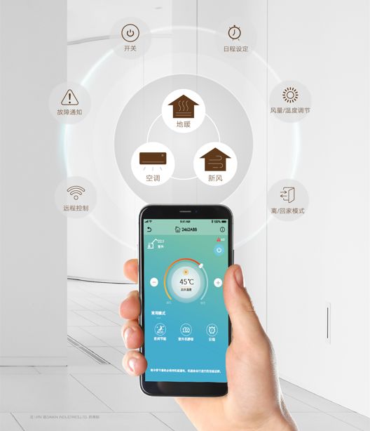 ??大金空調(diào)能夠?yàn)槊總€(gè)人的家提供個(gè)性化選擇,這得益于大金空調(diào)豐富的產(chǎn)品線及多樣的產(chǎn)品功能,大金研發(fā)了針對(duì)客廳、臥室、兒童房、廚房、衛(wèi)生間、衣帽間、書房等各個(gè)空間的空調(diào)室內(nèi)機(jī),能夠滿足不同空間的功能性需求,特殊的廚房、衛(wèi)浴空間也能擁有無(wú)油煙、不潮濕的空氣體驗(yàn)。 ??同時(shí),大金全新推出了中央空調(diào)+新風(fēng)+地暖智聯(lián)一體的舒適系統(tǒng),夏天用空調(diào),清涼無(wú)風(fēng)感;冬天用地暖,溫暖又舒適。值得一提的是,大金地暖采用空氣源熱泵技術(shù),利用少量電量和免費(fèi)空氣能,獲得4倍溫暖*,對(duì)比常見(jiàn)燃?xì)忮仩t,費(fèi)用節(jié)省率最高可達(dá)53%*1。 ??全屋空氣智能互聯(lián) 實(shí)現(xiàn)更高生活品質(zhì)