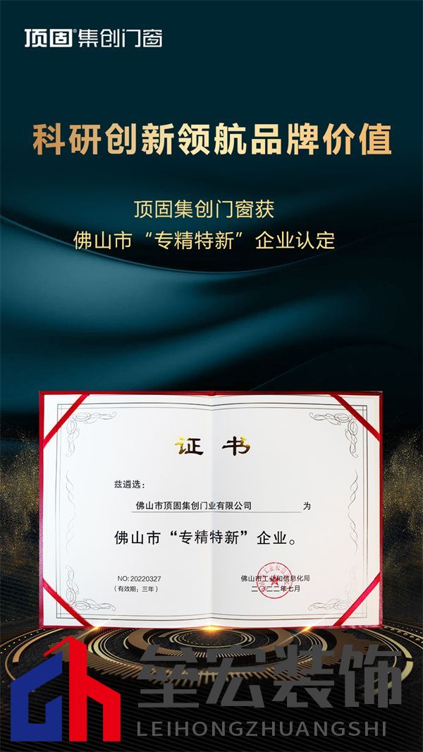 | ??近日,佛山市工業(yè)和信息化局公布了2022年度“專(zhuān)精特新”企業(yè)名單,頂固全資子公司佛山市頂固集創(chuàng)門(mén)業(yè)有限公司位列榜單,這是對(duì)頂固專(zhuān)注技術(shù)研發(fā)、堅(jiān)持原創(chuàng)設(shè)計(jì)的高度認(rèn)可。