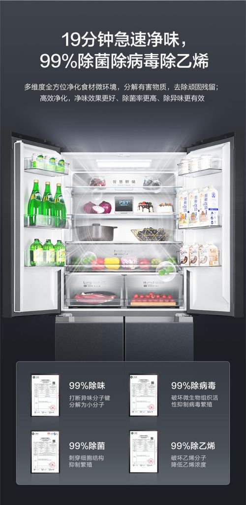 值得一提的是,“PST+智能凈化科技”不僅能讓冰箱內(nèi)部更健康,還能讓食材營養(yǎng)保存更好、保鮮時長更長。威凱認(rèn)證檢測有限公司2022年發(fā)布的《CVC標(biāo)志認(rèn)證實施規(guī)則 凈化健康保鮮冰箱分級認(rèn)證》分級標(biāo)準(zhǔn)中,除了對除異味率、除菌率、除病毒率、除乙烯率、除農(nóng)殘率等內(nèi)容做出衡量,還明確標(biāo)識了對失重率、汁液流失率的要求。而美的冰箱“PST+智能凈化技術(shù)”在此項認(rèn)證中,獲得了一級凈化健康保鮮標(biāo)準(zhǔn)的評級。這意味著該技術(shù)不僅能為中國家庭帶來硬核健康守護,也帶來充足的美食新鮮力,有效避免大量囤貨造成的食材不新鮮,從源頭減少食糧浪費。