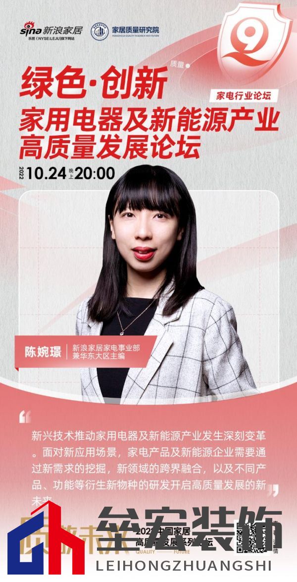 | ??家用電器及新能源產業(yè)日益成為民生行業(yè)至關重要的組成部分,也是滿足人民美好生活需要的重要載體。那么在產業(yè)升級需求下,企業(yè)如何以創(chuàng)新為引領,以應用促發(fā)展,大力推動家用電器及新能源產業(yè)綠色及高質量發(fā)展? ??腳踏三大綠色賽道,創(chuàng)新推動高質量發(fā)展。2022年10月24日晚上20:00,由新浪家居家電事業(yè)部策劃的“綠色·創(chuàng)新·高質量 家用電器及新能源產業(yè)發(fā)展新動力”線上論壇圓滿召開。 ??新浪家居家電事業(yè)部主編兼華東大區(qū)主編 陳婉璟作為本次論壇主持人,表示: