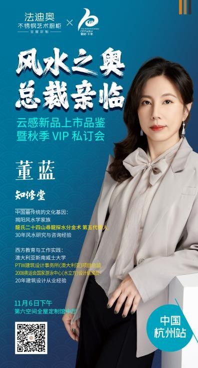??董藍老師出身揭陽傳統(tǒng)風(fēng)水學(xué)家族,精通風(fēng)水與建筑設(shè)計,2008年受邀成為奧運會水立方設(shè)計組成員。 ??法迪奧攜手董藍老師已在佛山、??诘鹊赝瞥觥凹揖语L(fēng)水哲學(xué)”巡講沙龍,深受高端用戶喜愛。 ??本活動僅限杭州法迪奧內(nèi)部VIP客戶尊享,限量30席,憑函入場。 ??有意者請前往法迪奧杭州旗艦店咨詢。