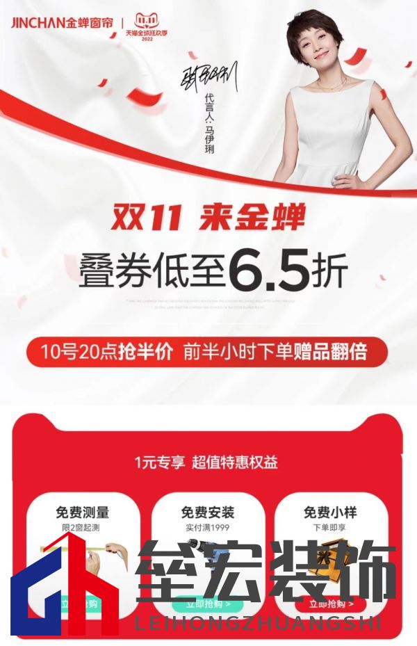 ??金蟬窗簾在今年的雙十一給新老顧客一個(gè)鉅惠折扣,產(chǎn)品全是65折,而且在付定金和尾款的時(shí)候還可以搶半價(jià)優(yōu)惠。馬上雙十一活動(dòng)要結(jié)束了,但是雙十一現(xiàn)貨半價(jià)優(yōu)惠還沒(méi)有收尾,金蟬窗簾在11月10日20點(diǎn)開(kāi)始到11月11日11點(diǎn)59分下單并付款的第1-20個(gè)訂單依然是半價(jià)優(yōu)惠,前21-50名的顧客是窗紗半價(jià),半價(jià)活動(dòng)雖與其它優(yōu)惠券不可疊加使用,但是半價(jià)優(yōu)惠可謂是窗簾行業(yè)的前所未有,搶到就是賺到。 ??注重家裝的朋友都知道,金蟬窗簾在窗簾行業(yè)中算是先行者,早在1988年,金蟬就成為國(guó)內(nèi)窗簾行業(yè)優(yōu)秀的生產(chǎn)制造商和銷(xiāo)售商,然后專(zhuān)注主打布藝窗簾。金蟬從開(kāi)始就把品質(zhì)和創(chuàng)新放在前位,從首創(chuàng)窗紗噴花工藝,引領(lǐng)窗紗進(jìn)入彩色時(shí)代,到成功研發(fā)出專(zhuān)利新品“分解甲醛功能性窗簾”,金蟬的產(chǎn)品質(zhì)量一直在線(xiàn),產(chǎn)品也逐漸遍布全國(guó)各地,并遠(yuǎn)銷(xiāo)世界60多個(gè)國(guó)家和地區(qū)。再加上金蟬還是馬伊琍代言的,品牌力持續(xù)上升,近三年金蟬窗簾在天貓金蟬旗艦店連續(xù)三年成為雙十一銷(xiāo)量冠軍。