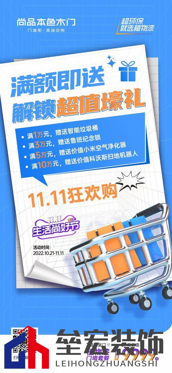 ??10月21日-11月11日,尚品本色重磅推出第六季“生活尚好節(jié)”品牌ip活動,以“超環(huán)保就選植物漆”為主題,以環(huán)保、生態(tài)、健康的家居理念為品牌基底,帶領(lǐng)人們尋覓家居生活的本質(zhì),共同掀起一場家居環(huán)保風(fēng)暴。 ??家居環(huán)保風(fēng)暴 ??實力出圈 ??此次生活尚好節(jié)與雙11全球狂歡嗨購季聯(lián)袂而至,尚品本色持續(xù)放出重磅環(huán)保驚喜,以一系列專屬特權(quán),鉅惠好禮,真正幫助消費以超值價格享環(huán)保家居產(chǎn)品。 ??活動期間,尚品本色以植物漆門墻套餐為核心,攜全屋房門、全屋木門、柜類定制、高端烤漆門墻套餐,為消費者打造全品家居定制套餐產(chǎn)品矩陣,五大套餐雙11齊齊上市,讓消費者全屋家裝一省到底,其中還推出9款明星單品直接以半價優(yōu)惠推向市場,幫助消費者把自家產(chǎn)品價格打至谷底,讓消費者輕輕松松拿下心儀之門。