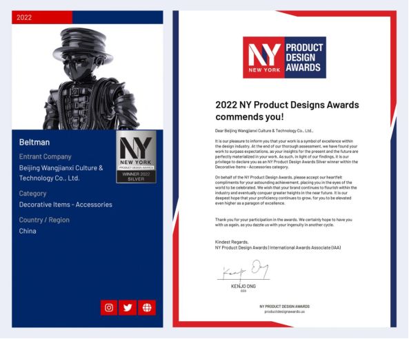 | ??近日,2022年美國紐約產品設計獎(NY Product Design Awards)官方公布了年度獲獎者名單,在今年的比賽中,望見璽品牌創(chuàng)始人、設計總監(jiān)白帆憑借卓越的設計理念脫穎而出,其參賽作品Beltman虜獲了評審團的心,榮獲產品設計裝飾類、配飾類銀獎。 ??紐約產品設計獎(NY Product Design Awards)作為當今著名的產品設計權威獎項,旨在表彰來自世界各地的天才產品設計師、設計團隊和制造商的努力。他們的設計以其實用和巧妙的創(chuàng)造使日常生活更加美好。