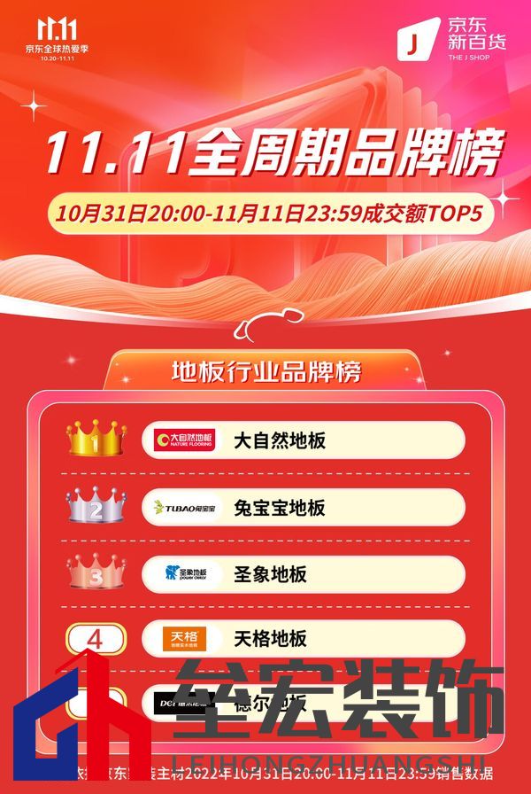 ??與以往不同,今年大自然地板不僅繼續(xù)參與天貓、京東電商平臺(tái)的雙11大促,同時(shí)也參與居然之家和紅星美凱龍線下平臺(tái)的雙11大促,并一舉奪得“四冠王”。
