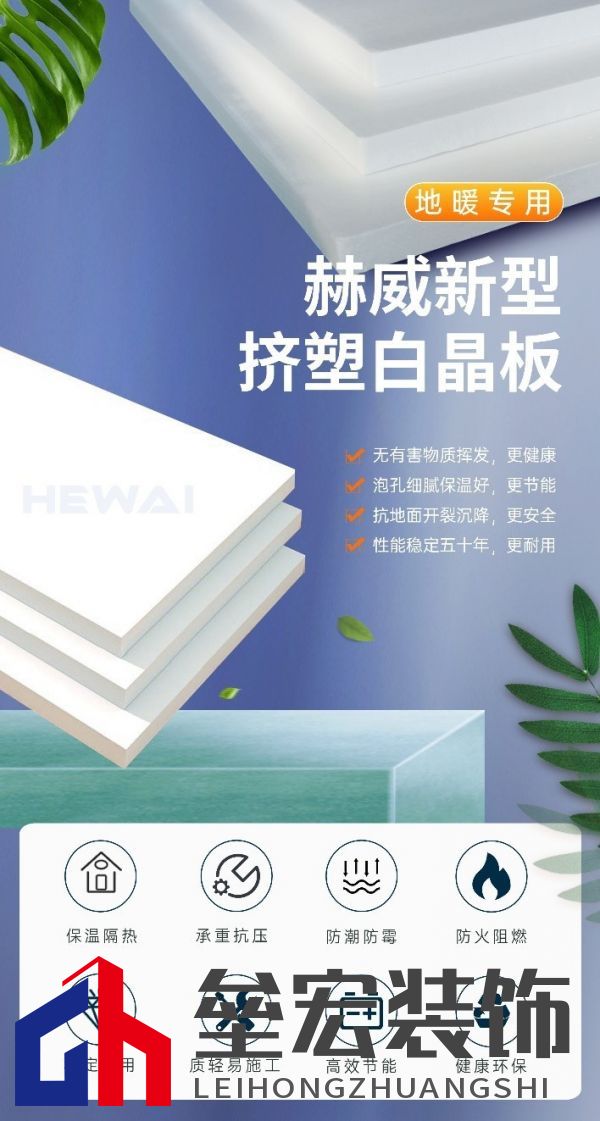 ??三、高防腐,低吸水,更耐用 ??赫威新型擠塑白晶板具有優(yōu)異的防腐蝕、防老化、防火阻燃性能,即使在高水蒸氣壓力下,仍能保持其優(yōu)異的品質(zhì),更經(jīng)久耐用。其吸水率低于0.5%,可有效解決其他材料漏水滲透、發(fā)霉腐蝕、結(jié)霜冷凝等問題,即便長期泡水也能維持不變,使用壽命達50年以上。 ??四、高品質(zhì)、好原料,更環(huán)保 ??當(dāng)前,市場上充斥著各種回收料、有害塑料生產(chǎn)的地暖保溫板,其在地暖使用環(huán)境下會產(chǎn)生氯氣、甲醛等有害氣體及致癌物質(zhì),長期使用對人體健康會造成極大傷害。 ??赫威新型擠塑白晶板采用100%全新環(huán)保原材料,通過先進的無氟無溴技術(shù)生產(chǎn),零添加劑,高溫下無任何有害物質(zhì)釋放,真正環(huán)保健康更安全。