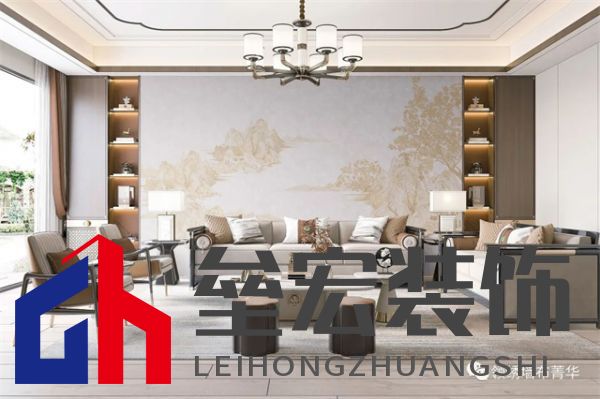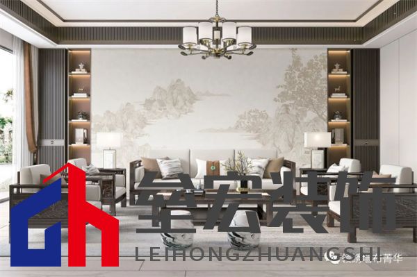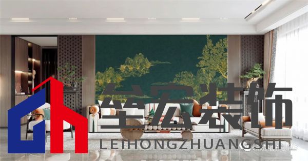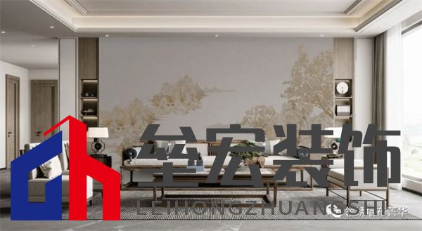墻面上流暢的寫意山水畫 反映了中式古典風采 筆墨交融,構建詩情畫意氛圍 兩岸青山 中灰
