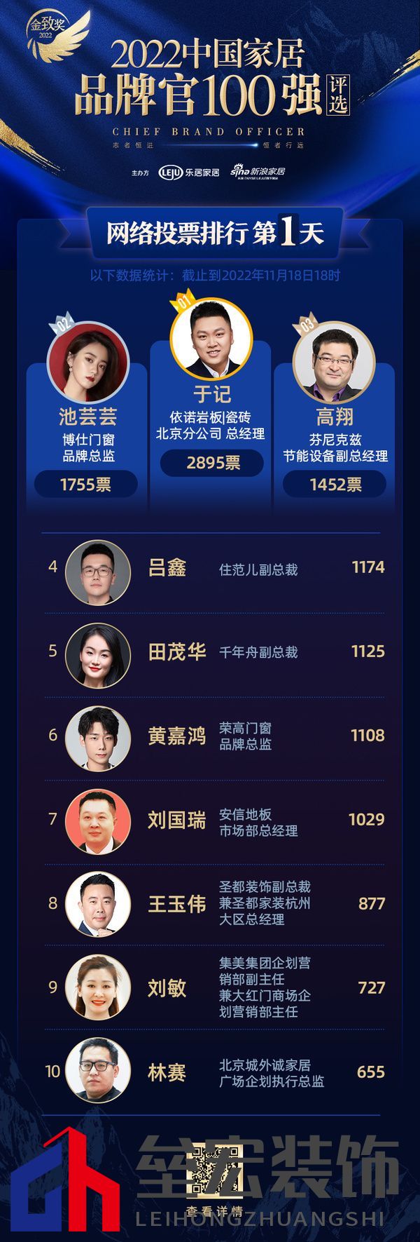 ??網(wǎng)絡(luò)票選通道一經(jīng)開通,引起廣大網(wǎng)友熱烈反響,眾多消費者踴躍參與投票,并將投票轉(zhuǎn)發(fā)至好友、朋友圈為值得信賴的家居品牌官助力。數(shù)據(jù)顯示,截止11月18日18時,「2022(第八屆)中國家居百強品牌官」評選活動首日累計收獲有效票數(shù)26041票。 ??票選首日,依諾巖板|瓷磚北京分公司總經(jīng)理 于記以2895票斬獲百強品牌官評選榜首位置。于記自2016年入職北京伊諾鐵軍,帶領(lǐng)團隊當(dāng)年銷售額破億元大關(guān),堅信品牌重在品質(zhì)交付、全方位為消費者權(quán)益保駕護航。在票選首日取得佳績,足以證明消費者對其的認(rèn)可。 ??排名第二位的是博仕門窗品牌總監(jiān) 池蕓蕓,在票選首日獲得1755票。作為博仕門窗的品牌總監(jiān),全面統(tǒng)籌品牌建設(shè)與管理工作,為品牌煥發(fā)活力不斷努力。 ??排名第三位的是芬尼克茲節(jié)能設(shè)備副總經(jīng)理 高翔。高翔是熱泵行業(yè)的一名老戰(zhàn)士,在芬尼已經(jīng)15載,從研發(fā)做起,見證了行業(yè)的發(fā)展歷程。 ??四至六名分別是:住范兒副總裁呂鑫(1174票)、千年舟副總裁 田茂華(1125票)、榮高門窗品牌總監(jiān) 黃嘉鴻(1108票)、安信地板市場部總經(jīng)理 劉國瑞(1029票)、圣都裝飾副總裁兼圣都家裝杭州大區(qū)總經(jīng)理王玉偉(877票)、集美集團企劃營銷部副主任兼大紅門商場企劃營銷部主任 劉敏(727票)、北京城外誠家居廣場企劃執(zhí)行總監(jiān)林賽(655票)。 ??品牌力是生產(chǎn)者和消費者共同的追求,是供給側(cè)和需求側(cè)升級的方向,是企業(yè)乃至國家綜合競爭力的重要體現(xiàn)。我國不斷提出要加強品牌建設(shè)、提升我國品牌影響力和競爭力,以優(yōu)化供給、擴大需求、推動高質(zhì)量發(fā)展。作為我國制造業(yè)中重要的組成部分,家居行業(yè)擔(dān)負(fù)著推動“中國制造”向“中國創(chuàng)造”轉(zhuǎn)變的歷史進程。而每一個家居企業(yè)的“品牌力”建設(shè)也是促進行業(yè)健康發(fā)展、國家經(jīng)濟體系完善必不可少的堅實基礎(chǔ)。 ??中國家居“品牌官”擔(dān)負(fù)著中國家居品牌的形象建設(shè)與價值塑造,正是他們的存在,讓許多優(yōu)秀的中國家居品牌得以熠熠生輝。本屆金致獎評選致力于尋找和表彰發(fā)揮品牌引領(lǐng)作用、激發(fā)企業(yè)創(chuàng)新創(chuàng)造活力、樹立自主品牌消費信心的優(yōu)秀品牌官,傳遞品牌價值、推動行業(yè)發(fā)展,讓這些優(yōu)質(zhì)的家居產(chǎn)品被更多的消費者所熟知、選擇?!讣揖悠放乒佟故瞧髽I(yè)歷史的記錄與宣講者,他們將品牌珍貴且長期堅守的專業(yè)精神、工匠精神發(fā)揚光大,賦予品牌敢于在開放市場中公平競爭的勇氣和能力,也推動了全社會牢固樹立品牌意識,努力提高產(chǎn)品和服務(wù)的質(zhì)量與綜合競爭力,使更多中國品牌成為國內(nèi)外市場值得信賴的選擇。 ??「2022(第八屆)中國家居百強品牌官」評選致力于尋找和表彰發(fā)揮品牌引領(lǐng)作用、激發(fā)企業(yè)創(chuàng)新創(chuàng)造活力、樹立自主品牌消費信心的優(yōu)秀品牌官,希望通過對他們的宣講傳遞更多的品牌價值,推動行業(yè)整體健康有序的發(fā)展。 ??網(wǎng)友可通過網(wǎng)絡(luò)票選入口進行投票及查看您關(guān)注的品牌官或者各位品牌官實時票數(shù)動態(tài)。 ??據(jù)悉,本次網(wǎng)絡(luò)票選為期七天,從11月18日起至11月24日,在全國范圍內(nèi)同時展開。本次票選在「2022(第八屆)中國家居百強品牌官」網(wǎng)絡(luò)票選專題舉行,投票者既可在每個家居品牌官個人頁面進行投票,同時可將品牌官個人頁面分享至朋友圈等社交網(wǎng)絡(luò)為其拉票。樂居家居、新浪家居為本次票選唯一投票通道。 ??請為您心中的2022中國家居品牌官100強候選人投上寶貴一票! |