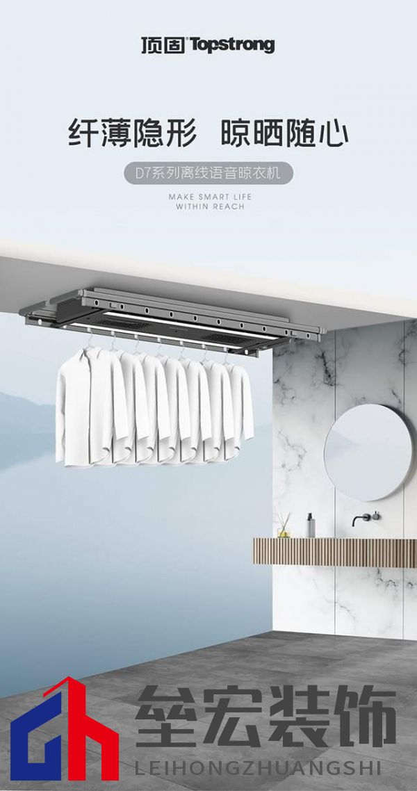 ??9.3cm纖薄隱形機身 ??既是風(fēng)景,也不妨礙看風(fēng)景 ??生活在寸土寸金的城市,擁有一個陽臺成為了一件奢侈的事情,當然是用來當作休閑區(qū),和家人朋友喝喝茶,聊聊天,怎么可以只是用來曬衣服呢?怎么可以讓又大又笨重的落地晾衣架占用了陽臺空間呢?頂固D7離線語音晾衣機,采用9.3cm纖薄隱形機身嵌入式設(shè)計,隱形收攏,1.28-2.18m靈活伸縮,就算是封閉的陽臺也可以內(nèi)開窗,不占用陽臺空間,不擋陽臺視野,造就陽臺靚麗風(fēng)景線,有了它,看風(fēng)景和曬衣服兩不誤。
