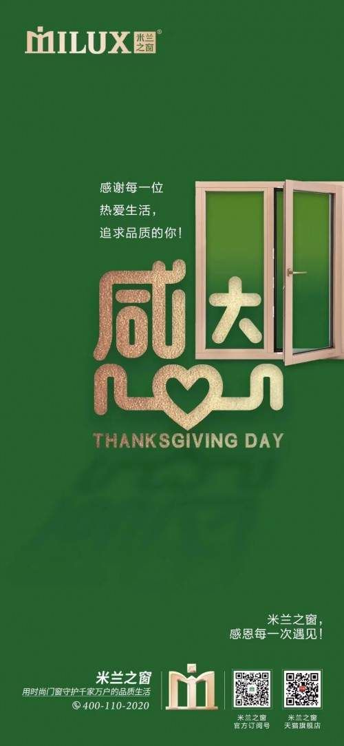| ??知恩于心,感恩于行。感恩予我生活甘甜,伴我風里雨里的你。致謝感恩節(jié),讓我們能在氣溫漸寒的冬日中向生命中重要的人道聲感謝。美好生活,用心感恩,用一樘高品質門窗讓家升溫,開啟美好家居生活,用愛溫暖彼此。