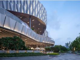 珠海環(huán)宇城的外立面以多層次的波浪紋呼應(yīng)海洋主題 裙樓設(shè)計以海洋作為靈感,與帆船形態(tài)的塔樓設(shè)計相呼應(yīng)。波紋折板、浪花型的穿孔鋁板等飾面配合簡潔流暢的線條突出現(xiàn)代輕奢感。入口以海浪元素為設(shè)計靈感,臨河一面的圓弧形線條宛如層層疊疊的波紋,加上造型各異的頂棚,讓人有種踏入海浪的互動感。夜幕降臨后,在燈光的烘托下,人們仿佛沉浸于寧靜而斑斕的海洋世界。