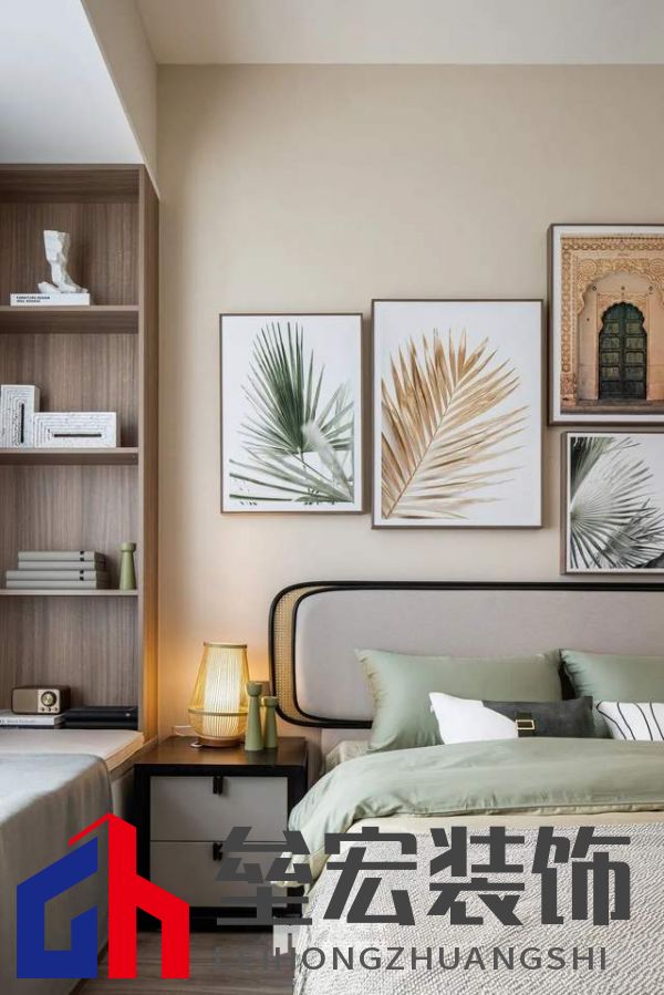 ??以豆綠色與米咖色相結(jié)合,床頭燈、頂燈、邊柜采用竹編元素來塑造,光源彌漫擴(kuò)散,仿佛隨時可以沉浸在旅行的美好回憶之中。