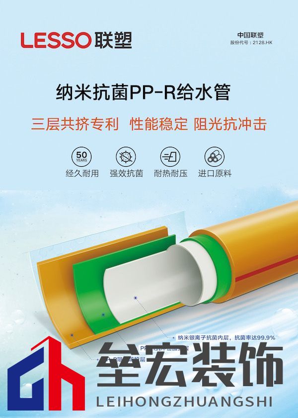 ??供水管道陳舊老化已經(jīng)成為水質污染的一大威脅,如果給水管道質量不達標、外露、隔光效果不好,容易使水管內壁滋生細菌附著于管壁內,當管道中水流較慢或停流時,經(jīng)過繁殖會形成菌群從而影響水質,為了從根源上解決問題,我們需要破壞細菌在管壁內滋生的環(huán)境,讓細菌無安生之地! ??聯(lián)塑好管家推薦:聯(lián)塑納米系列抗菌管 ??納米抗菌管是在PP-R管基礎上的升級,它不僅具有PP-R管材的所有特性,而且具有顯著的抗菌效果。管材采用高科技抗菌材料納米銀離子,能夠直接深入細菌的細胞核,讓細菌窒息而死,具有高效廣譜抗菌功效,無毒無污染,納米抗菌技術能夠廣泛抗菌而且效果持久。經(jīng)國家權威機構檢測表明,管材對大腸桿菌、金黃色葡萄球菌及鼠傷寒沙門氏菌抗菌率達90%以上,各種衛(wèi)生指標均達到國家標準,納米抗菌 PP-R管是一種功能性給水管,可直接用于純凈水輸送系統(tǒng),是生活用水的衛(wèi)生防線。