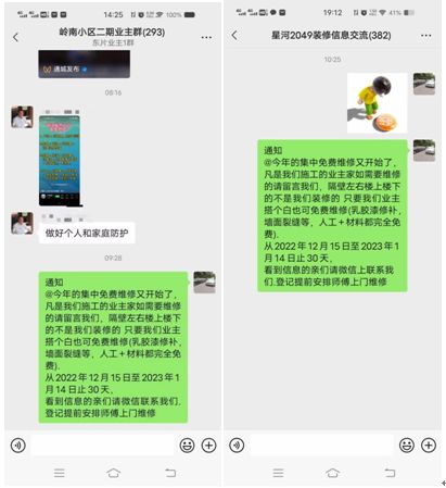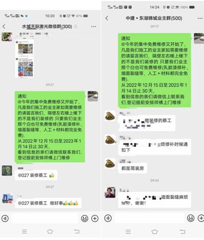 據(jù)新浪家居記者了解,從2012年起,只要是蔡小江負(fù)責(zé)施工的工地,均為業(yè)主提供免費(fèi)終身維修這項(xiàng)服務(wù),一堅(jiān)持都十年了,每年年底都有30天的集中免費(fèi)維修期,今年就定于12月15日至2023年1月14日止30天,蔡工長(zhǎng)的消息一經(jīng)推出,當(dāng)天報(bào)名的有20多家,得到了廣大業(yè)主的積極響應(yīng)。對(duì)于他來(lái)說(shuō),提供乳膠漆修補(bǔ)、墻面裂縫等免費(fèi)維修服務(wù),人工和材料都完全免費(fèi),業(yè)主在群里報(bào)名后,他會(huì)安排工人上門(mén)服務(wù),近幾年的維修成本每年都在5萬(wàn)元左右,這筆經(jīng)費(fèi)的投入每年都是鐵打的不可免。