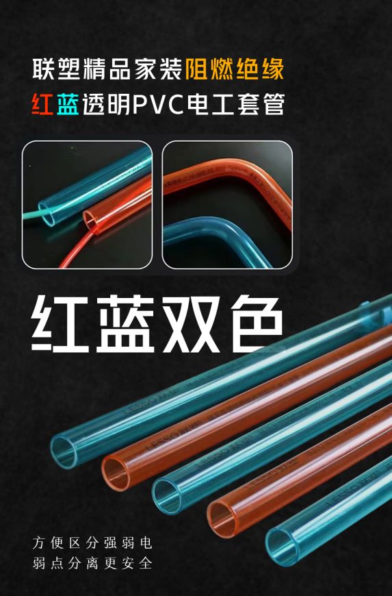 ??下水口搭配安裝聯(lián)塑防返溢地漏系列產(chǎn)品 ??還能更好地解決“臭、堵、淹、溢”等問題 ??3、電路保護(hù) ??電路鋪設(shè)同樣是家裝的重中之重 ??隱藏在墻體或地板內(nèi)的電路 ??一旦發(fā)生短路、漏電等問題 ??不僅影響正常使用,還容易引發(fā)火災(zāi) ??所以電路的保護(hù)也一定不能馬虎 ??聯(lián)塑精品家裝阻燃絕緣紅藍(lán)透明PVC電工套管 ??采用新型PVC材質(zhì) ??透明度高,彎曲性能好 ??可為電路提供多一層可靠保護(hù) ??紅藍(lán)雙色設(shè)計(jì),更便于區(qū)分強(qiáng)弱電 ??及時(shí)檢查、排除安全隱患