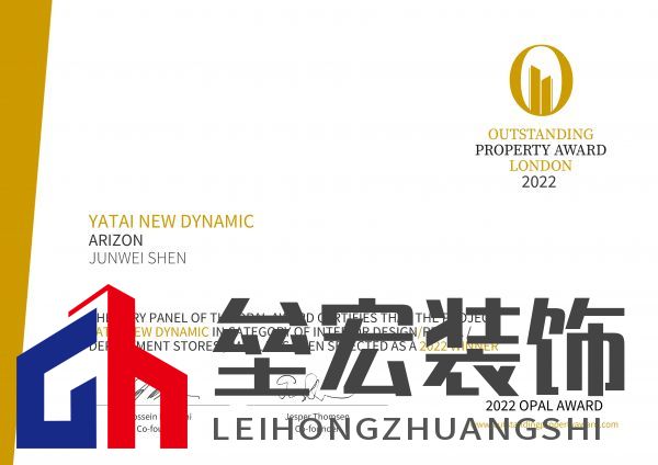 ??2022年12月16日,Outstanding Property Award London倫敦杰出地產(chǎn)獎(OPAL)公布本年度獲獎名單,ARIZON乾正設(shè)計(jì)參賽作品Yatai New Dynamic 亞泰新動力,榮膺2022 OPAL倫敦杰出地產(chǎn)獎-購物中心類別-室內(nèi)設(shè)計(jì)-Winner。