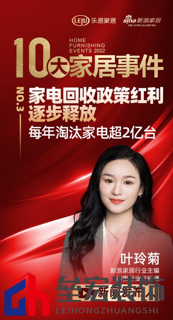 | ??新浪家居訊 由樂居家居主辦,新浪家居承辦,大國品牌、家頁智庫、大國中居聯(lián)合主辦的『趁勢·再起——2022中國家居新時代盛典暨金致獎頒獎典禮』于12月26日下午14:30在云端盛大開幕。 ??為更好地記錄行業(yè)發(fā)展軌跡,在本次盛會中,新浪家居以媒體視角聚焦行業(yè)熱點,特別盤點了「2022家居十大事件」,與大會一同回顧今年中國家居領(lǐng)域發(fā)生的標(biāo)志性事件,感受家居行業(yè)在特殊歷史階段下經(jīng)歷的全新挑戰(zhàn)。 2022十大家居事件③|家電回收政策紅利逐步釋放 每年淘汰家電超2億臺 5月20日,國家發(fā)改委、工信部、生態(tài)環(huán)境部辦公廳三部門聯(lián)合發(fā)布通知,要求家電生產(chǎn)企業(yè)完成廢舊家電目標(biāo)回收任務(wù)。據(jù)發(fā)改委數(shù)據(jù)顯示,我國家電保有量已超過21億臺,每年淘汰廢舊家電量達(dá)1億至1.9億臺,并以平均每年20%的漲幅增長,預(yù)計2022年家電報廢量將超2億臺,如此龐大的市場保有量,在“雙碳”減排政策紅利的加持下,正逐漸催生一批以家電回收與以舊換新業(yè)務(wù)為第二增長曲線的綠色家電企業(yè)。 |