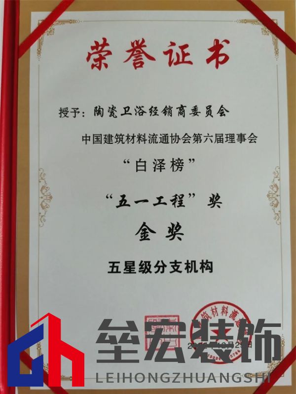 ▲中國建筑材料流通協(xié)會第六屆理事會“白澤榜”“五一工程”獎金獎(五星級分支機(jī)構(gòu))獎