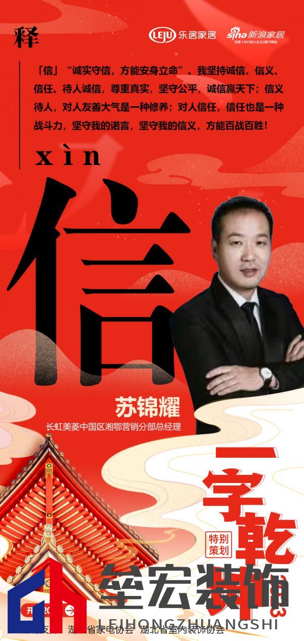 在新浪家居“2023一字乾坤”活動(dòng)中,長(zhǎng)虹美菱中國(guó)區(qū)湘鄂營(yíng)銷分部總經(jīng)理蘇錦耀:「信」“誠(chéng)實(shí)守信,方能安身立命”。我堅(jiān)持誠(chéng)信、信義、信任。待人誠(chéng)信,尊重真實(shí),堅(jiān)守公平,誠(chéng)信贏天下;信義待人,對(duì)人友善大氣是一種修養(yǎng);對(duì)人信任,信任也是一種戰(zhàn)斗力,堅(jiān)守我的諾言,堅(jiān)守我的信義,方能百戰(zhàn)百勝! “以漢字賦能湖北家居企業(yè),彰顯厚積薄發(fā)之力”,以單字抒寫了各家企業(yè)及媒體的新年愿景與發(fā)展信條,領(lǐng)略楚風(fēng)漢韻下湖北家居人砥礪向前,揚(yáng)帆未來(lái)的決心與動(dòng)力,情暖兔歲,新啟華章。 |