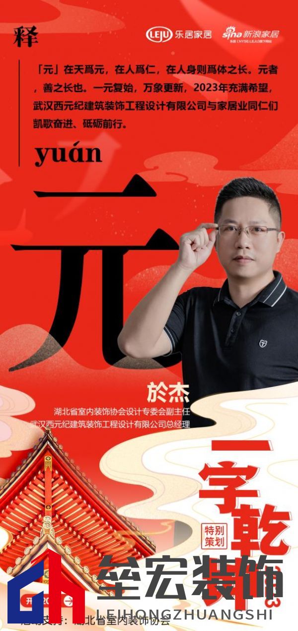 在新浪家居“2023一字乾坤”活動(dòng)中,湖北省室內(nèi)裝飾協(xié)會(huì)設(shè)計(jì)專(zhuān)委會(huì)副主任、武漢西元紀(jì)建筑裝飾工程設(shè)計(jì)有限公司總經(jīng)理於杰:「元」在天爲(wèi)元,在人爲(wèi)仁,在人身則爲(wèi)體之長(zhǎng)。元者,善之長(zhǎng)也。一元復(fù)始,萬(wàn)象更新,2023年充滿(mǎn)希望,武漢西元紀(jì)建筑裝飾工程設(shè)計(jì)有限公司與家居業(yè)同仁們凱歌奮進(jìn)、砥礪前行。 “以漢字賦能湖北家居企業(yè),彰顯厚積薄發(fā)之力”,以單字抒寫(xiě)了各家企業(yè)及媒體的新年愿景與發(fā)展信條,領(lǐng)略楚風(fēng)漢韻下湖北家居人砥礪向前,揚(yáng)帆未來(lái)的決心與動(dòng)力,情暖兔歲,新啟華章。 |