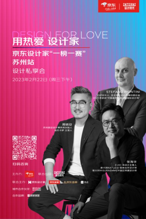 | ??2月22日,京東設(shè)計家“一榜一賽”即將走進魅力姑蘇,開啟蘇州站設(shè)計私享會。設(shè)計私享會現(xiàn)場,2021年被胡潤評為“中國最具影響力的國際設(shè)計師”的 Stefano Piontini先生將攜手蘇州知名設(shè)計師張海華、周曉安及幾十位精英設(shè)計師們齊聚一堂,同時也會有京東代表與到場嘉賓們深度交流,分享經(jīng)驗,傾聽來自一線設(shè)計師的真實需求,共探當(dāng)下設(shè)計師的多維發(fā)展機遇。