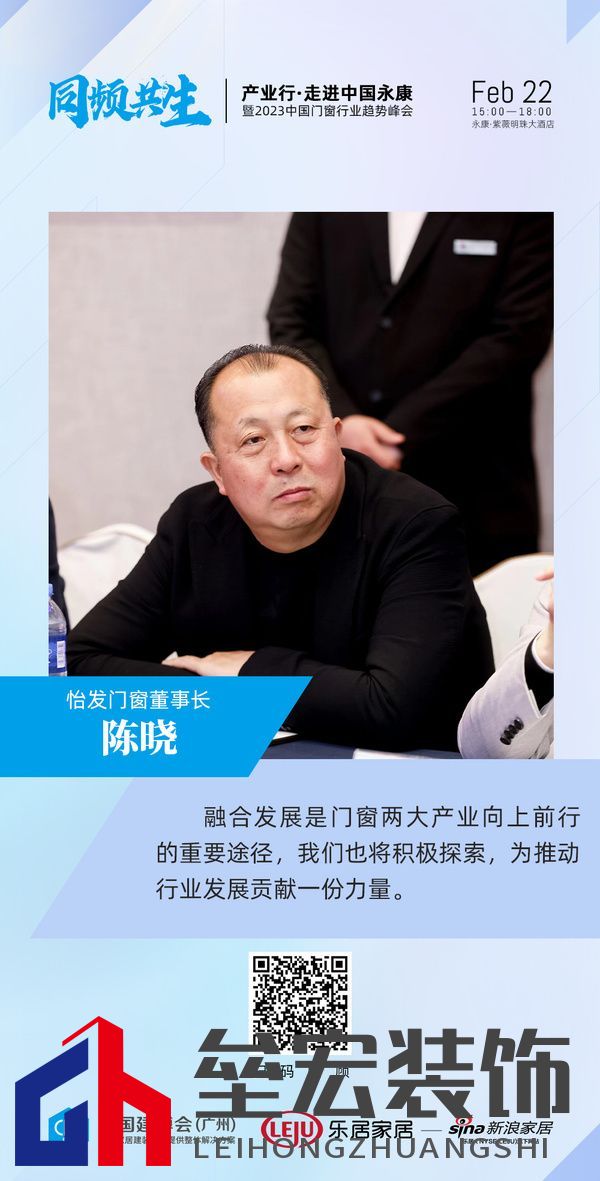 ??怡發(fā)門窗董事長陳曉:融合發(fā)展是門窗兩大產業(yè)向上前行的重要途徑,我們也將積極探索,為推動行業(yè)發(fā)展貢獻一份力量。 |