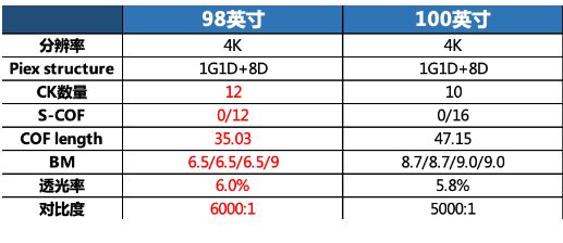 (圖片來源于網(wǎng)絡(luò)) 也許有人會(huì)覺得有疑惑,100吋電視怎么會(huì)是“非主流+偽創(chuàng)新”呢?這里將98吋屏幕與100吋屏幕參數(shù)展現(xiàn)給大家,也為大家普及一下屏幕設(shè)計(jì)和制造方面的基本知識(shí)。