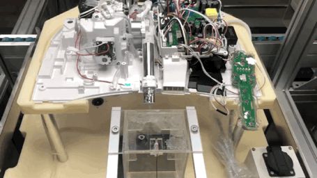 △ 智能車間IQC設(shè)備交互畫面 ??以東鵬江門智能家居生產(chǎn)基地(下簡(jiǎn)稱“東鵬江門基地”)的智能蓋板廠為例,其測(cè)試站一共20個(gè)工位,在所有機(jī)芯組裝完成后就會(huì)進(jìn)入站內(nèi),自動(dòng)完成老化的檢測(cè)過程。利用MES系統(tǒng),可以對(duì)檢測(cè)到的數(shù)據(jù)進(jìn)行存儲(chǔ)管理和遠(yuǎn)程監(jiān)控,并且能夠?qū)⒏黜?xiàng)數(shù)據(jù)對(duì)應(yīng)其正常區(qū)間進(jìn)行比對(duì),比如流量、出水溫度以及其他功能的參數(shù),使工作人員及時(shí)發(fā)現(xiàn)問題和解決問題,有效提升基地生產(chǎn)效率和產(chǎn)品質(zhì)量。