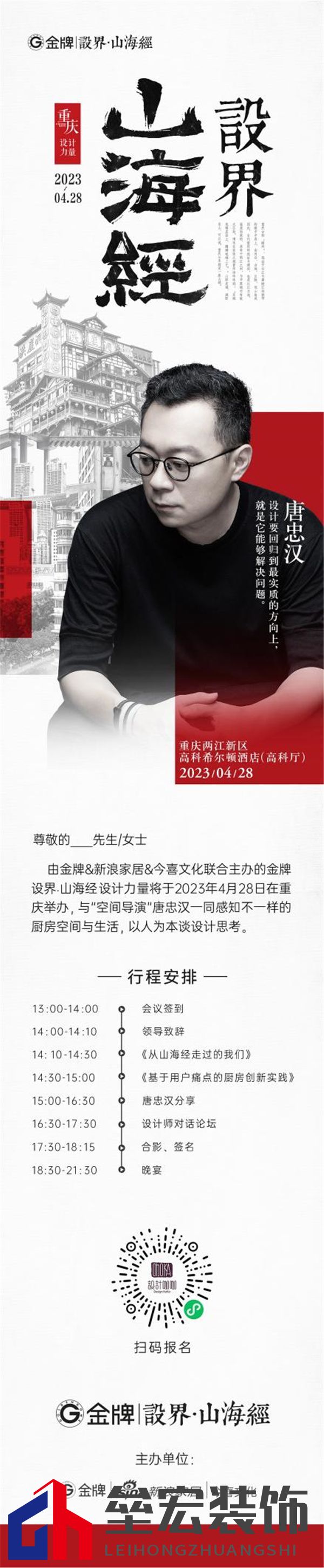 往期回顧 ??踏入2023年,《設(shè)界·山海經(jīng)》系列設(shè)計活動在奇幻山城重慶重磅啟航,將帶來更為精彩紛呈的活動,再度開啟一場融合品牌、設(shè)計與藝術(shù)的創(chuàng)意靈感之旅! ??正如金牌廚柜總裁潘孝貞所言:“我希望設(shè)計師交流不局限于一場演講或一次頒獎,而是深入了解一個城市的文化和生活,多個角度獲取設(shè)計啟發(fā)和靈感,做有文化傳承和地域特色的設(shè)計,不斷推動中國設(shè)計創(chuàng)新,為城市居民帶來美好生活?!?/p> ??攜手大咖唐忠漢,賦能中國整家空間美學(xué)變革 ??近境制作創(chuàng)始人·設(shè)計總監(jiān)、中國室內(nèi)設(shè)計十大年度人物、中國空間陳設(shè)行業(yè)領(lǐng)軍人物、Andrew Martin國際設(shè)計大獎得主唐忠漢先生,一直提倡透過室內(nèi)建筑的方式,體驗空間、光影、材質(zhì)、細(xì)節(jié),透過以人為本的思考,探索現(xiàn)代住宅的生活方式,回歸真實的需要。以此為出發(fā),唐忠漢打造了一系列經(jīng)典之作,被譽(yù)為“空間導(dǎo)演”,讓住宅不僅是滿足基本的需求,而是到達(dá)體驗的感受,看到的不僅是設(shè)計,而是對于生活的深刻體會。