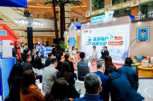 ??蔡旺庭 ??契合發(fā)布會(huì)主題,旺旺水神現(xiàn)場(chǎng)模擬家居環(huán)境,以新品水神HD-4L消毒機(jī)為中心,連接客廳、臥室、廚房、餐廳、衛(wèi)浴等日常環(huán)境,用水神替代自來水使用,演示客廳地面清潔、臥室家紡打理、廚房蔬果清洗、衛(wèi)浴系統(tǒng)除味、全屋降甲醛等,全場(chǎng)景展現(xiàn)水神HD-4L消毒機(jī)的家庭應(yīng)用場(chǎng)景。