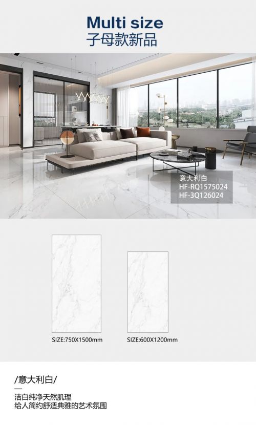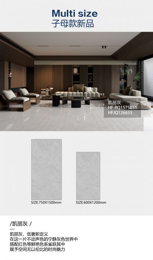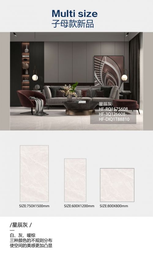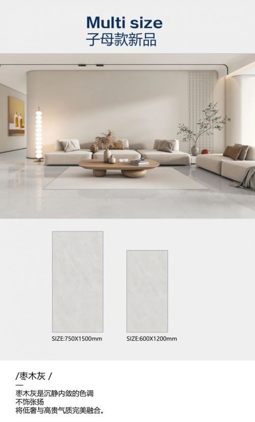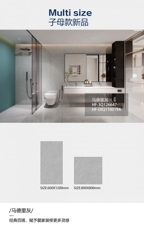 ??子母款新品 ??一磚多尺 · 墻地一體 ??惠萬家瓷磚子母款系列產(chǎn)品,打造多規(guī)格墻地一體化空間。同一款產(chǎn)品配覆蓋750×1500mm、600×1200mm、800×800mm、400×800mm規(guī)格,不同空間不同規(guī)格搭配 , “一款”成就墻地一體,讓設(shè)計(jì)構(gòu)思越過界限,滿足更多家庭的需求。